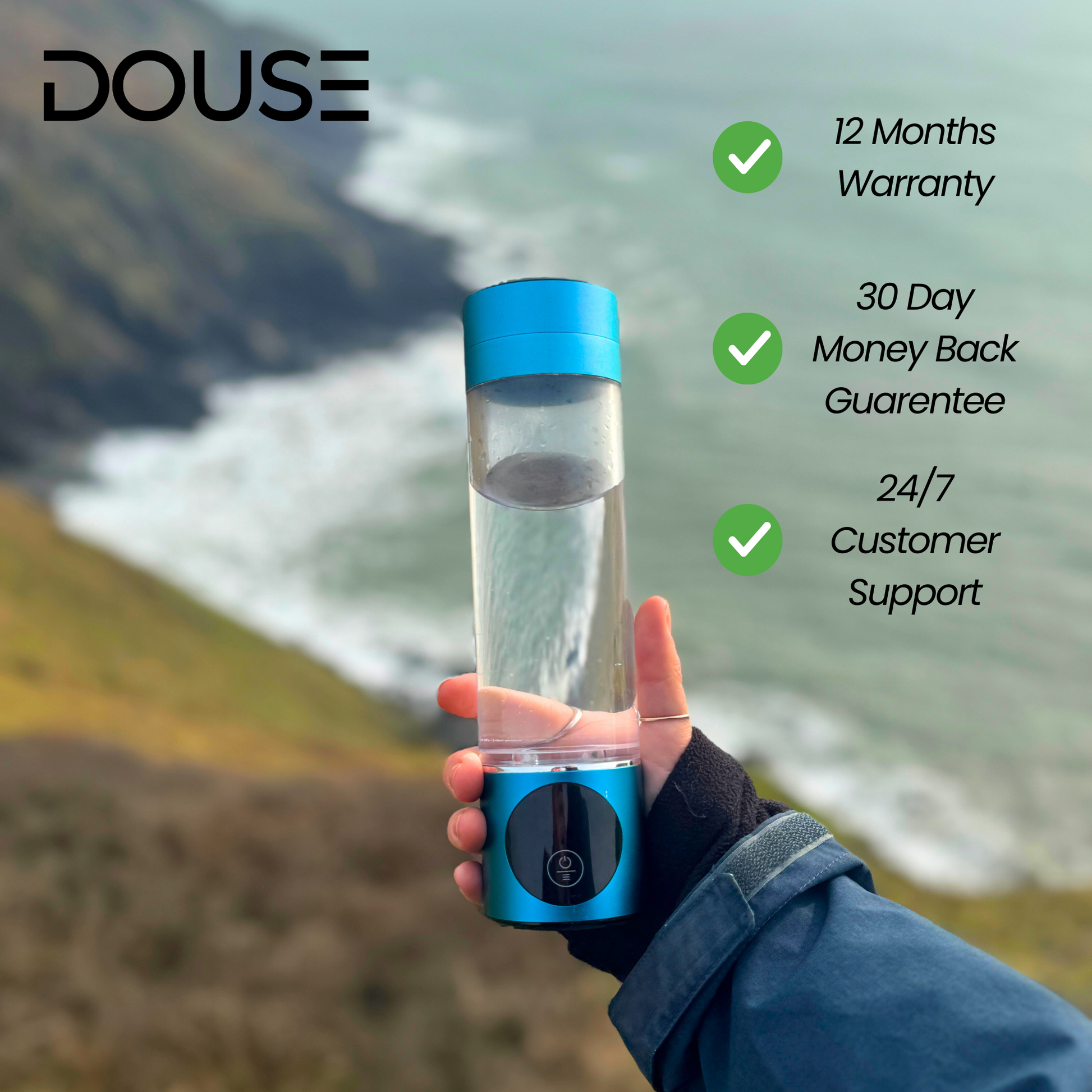 The DOUSE H8 stands apart with premium technology and materials that infuse high levels of molecular hydrogen while filtering out substances like chlorine and ozone, which many bottles on the market claim to do, but really do not! Always be sure to look out for cloudy water as this is a sure sign of chlorine and ozone leakage! With DOUSE, you can be sure to enjoy clean, refreshing hydration - no compromises, just superior quality.